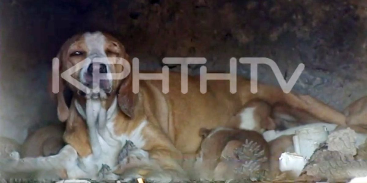 Η ηλικιωμένη σκυλίτσα, μεταφέρθηκε μισοπεθαμένη το μεσημέρι σε κτηνιατρείο στο Ηράκλειο με αναπνευστικά και επιφανειακά εγκαύματα και αμέσως εισήχθη σε θάλαμο οξυγόνου όπου τοποθετήθηκαν και τα κουτάβια που επέζησαν, αφού δόθηκαν οι πρώτες βοήθειες.