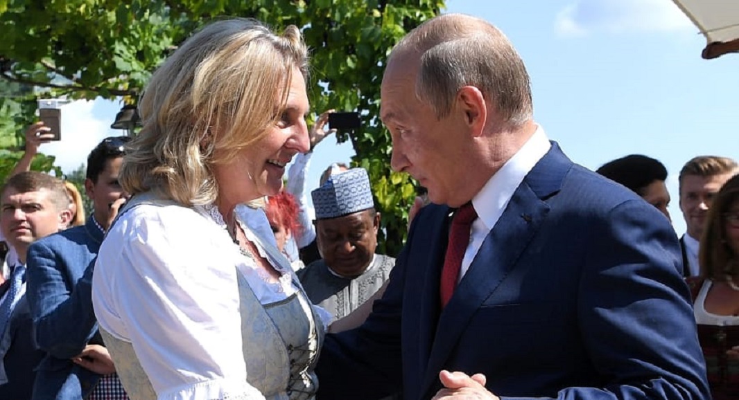 Ο πρόεδρος της Ρωσίας Βλαντιμίρ Πούτιν παρευρέθη στο γάμο της υπουργού Εξωτερικών της Αυστρίας Κάριν Κνάισλ με τον επιχειρηματία Βόλφγκανγκ Μάιλινγκερ, που τελέσθηκε σήμερα, προτού πραγματοποιήσει το ταξίδι του στις Βρυξέλλες.