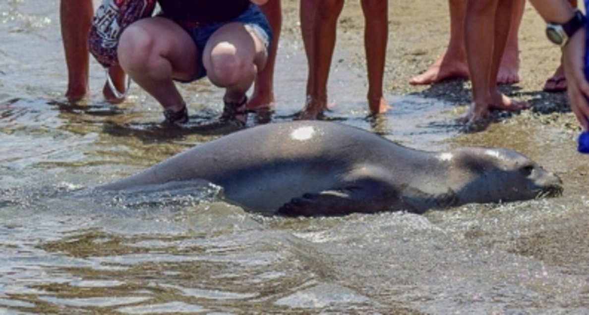 Ευχάριστη ήταν η έκπληξη για τους λουόμενους στην παραλία Άμμος στη Σκόπελο, όταν την ώρα που κολυμπούσαν είδαν μία μικρή αρσενική φώκια να κολυμπάει μαζί τους και όταν αργότερα βγήκε στην άμμο, αποκοιμήθηκε γιατί.. ήταν κουρασμένη.