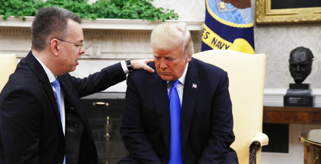 Από την πλευρά του ο Άντριου Μπράνσον ευχαρίστησε τον Ντόναλντ Τραμπ, την αμερικανική διοίκηση και το Κογκρέσο. Γονάτισε δίπλα στον μεγιστάνα στο Οβάλ Γραφείο και είπε μια προσευχή για εκείνον. Κατόπιν επισήμανε πόσο ευγνώμων είναι που ο Αμερικανός ηγέτης έδωσε μάχη για εκείνον. Επανέλαβε ότι αγαπάει την Τουρκία.
