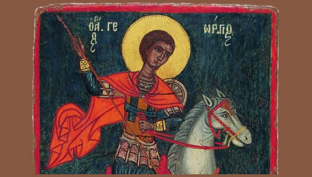 Ο Άγιος Γεώργιος, σύμφωνα με τον θρύλο, ήταν Ρωμαίος στρατιωτικός ελληνικής καταγωγής και αξιωματικός στη φρουρά του Ρωμαίου αυτοκράτορα Διοκλητιανού. Καταδικάστηκε σε θάνατο επειδή δεν αποκήρυξε τη χριστιανική του πίστη.