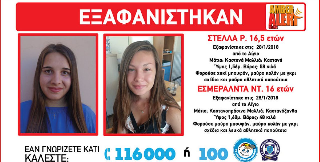 Αίσιο τέλος είχει η υπόθεση της εξαφάνισης των δύο 16χρονων κοριτσιών από το Αίγιο που είχαν εξαφανιστεί.