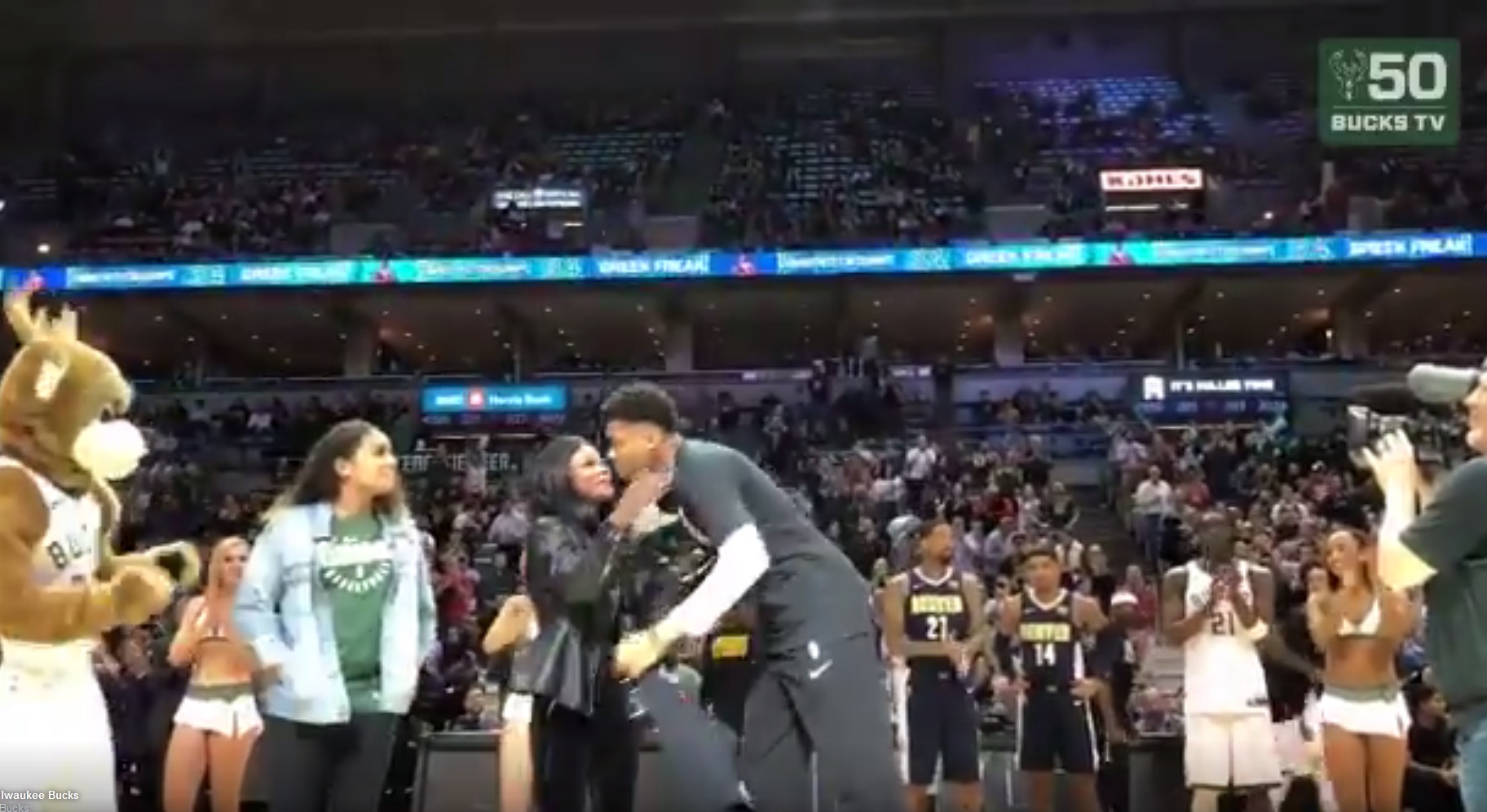 Η μητέρα του Έλληνα σούπερ σταρ βρέθηκε στο παρκέ και έδωσε στον γιο της τη φανέλα που θα φορέσει στη μεγάλη γιορτή του ΝΒΑ, στο τελευταίο ματς του Γιάννη Αντετοκούνμπο με τους Μπακς πριν το All Star.