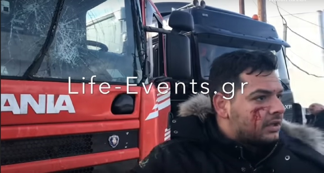 Ωστόσο, τα «αίματα άναψαν» με οδηγούς που ήθελαν να περάσουν από το σημείο. Τρία άτομα με πέτρες και με ξύλα άρχισαν να χτυπούν το παρμπρίζ μιας νταλίκας με αποτέλεσμα να προκληθούν ζημιές ενώ ελαφρά τραυματίστηκε ο οδηγός.
