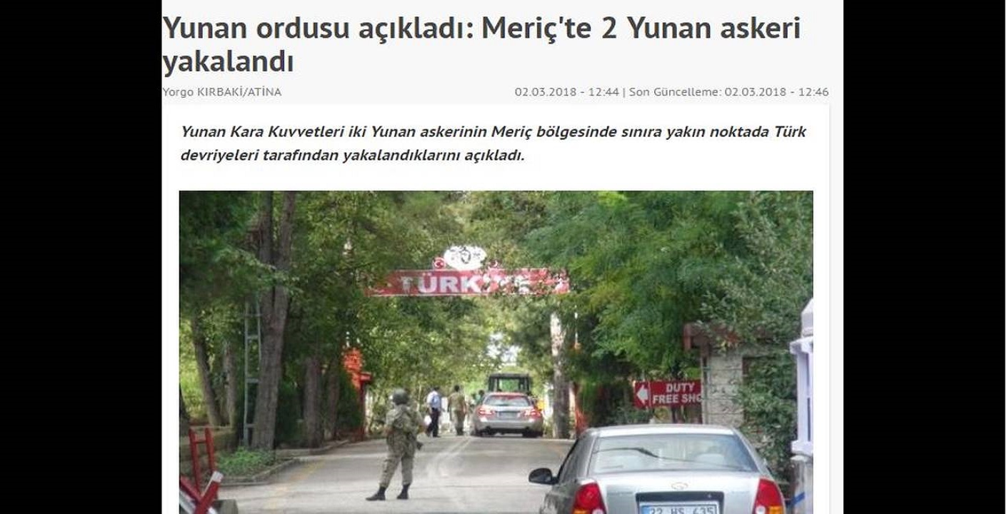 Ο τουρκικός τύπος, σε δημοσιεύματα του και συγκεκριμένη η εφημερίδα Hurriyet, αναφέρει πως έχουν ήδη μεταφερθεί στο δικαστήριο οι δύο Έλληνες αξιωματικοί που συνελήφθησαν στον Έβρο την Πέμπτη, με την κατηγορία της κατασκοπίας.