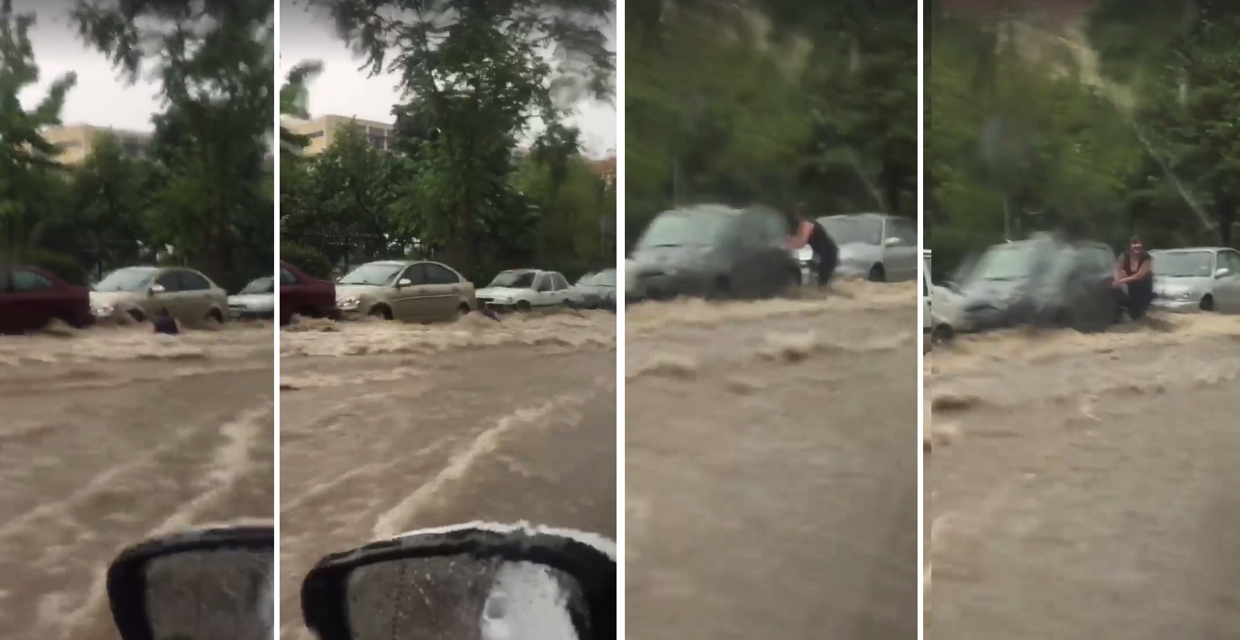 Στο βίντεο που θα δείτε, η γυναίκα βρίσκεται στο κέντρο της Θεσσαλονίκης και συγκεκριμένα στην οδό Εθνικής Αμύνης. Την ώρα που την παρέσυραν τα ορμητικά νερά, κάποιος χρήστης του Facebook που βρισκόταν μέσα στο αυτοκίνητο του την είδε, κατέγραψε τη σκηνή με το κινητό του και το ανέβασε στο διαδίκτυο.