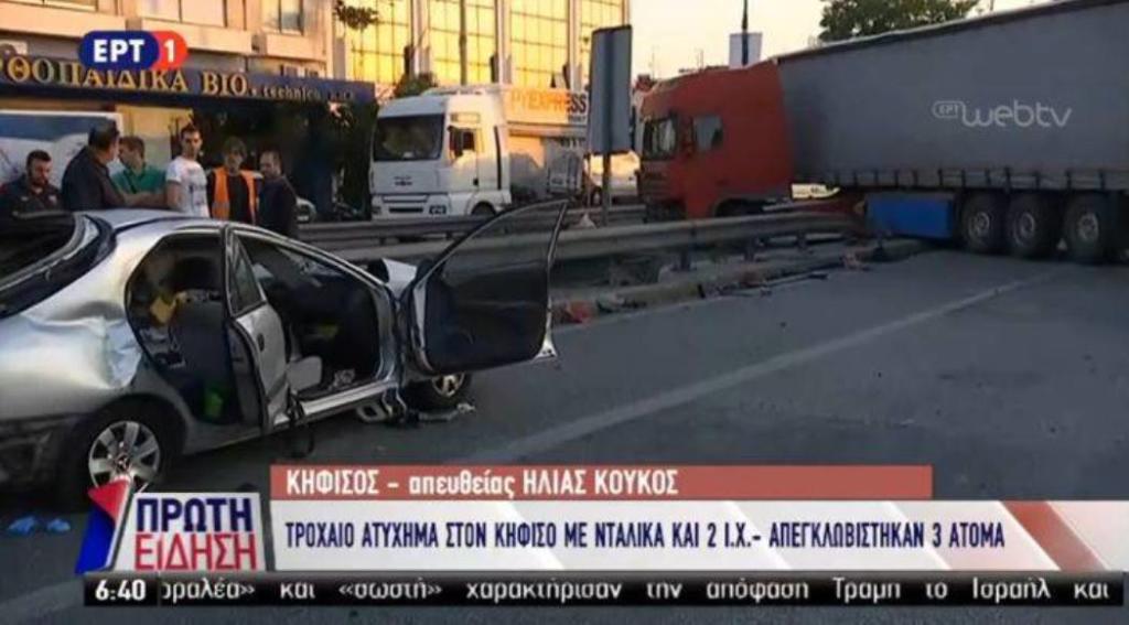 Δύο νεκροί άνδρες και μία πολύ σοβαρά τραυματισμένη γυναίκα, είναι ο τραγικός απολογισμός του τροχαίου δυστυχήματος, που σημειώθηκε στις 5.40 τα ξημερώματα, στη λεωφόρο Κηφισού, στο ρεύμα προς Πειραιά, στο ύψος του ΙΚΕΑ.