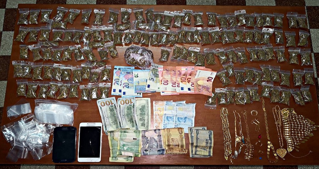 - Μεγάλος αριθμός χρυσαφικών (καδένες, δακτυλίδια κ.α.) και διάφορα χρηματικά ποσά, ως προερχόμενα από εγκληματική δραστηριότητα