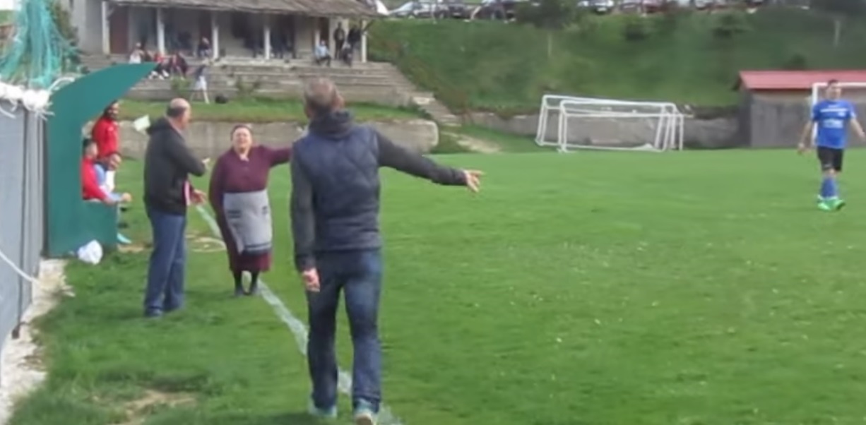 Το σπίτι της ηλικιωμένης γυναίκας που βγήκε με την ποδιά και το τσεμπέρι της για να διαμαρτυρηθεί, βρίσκεται δίπλα στο γήπεδο και μάλλον την ενόχλησαν οι φωνές και η φασαρία κατά την διάρκεια του αγώνα, οπότε σκέφθηκε πως θα έπρεπε να γίνει διακοπή.