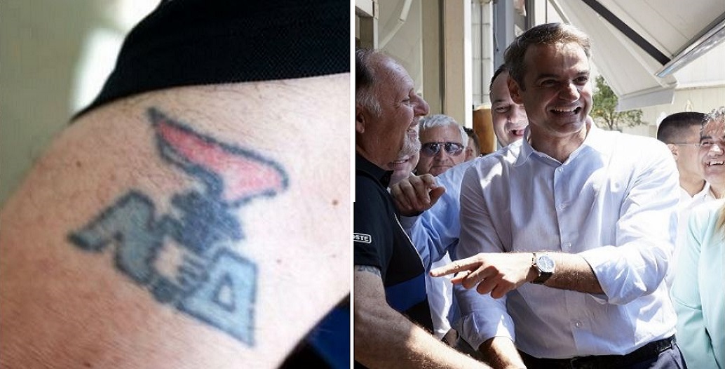 Μπροστά σε κάτι που δεν το περίμενε όμως, βρέθηκε ο αρχηγός της αξιωματικής αντιπολίτευσης. Ένας Ροδίτης, είχε «χτυπήσει» τατουάζ με τον πυρσό της Νέας Δημοκρατίας στο μπράτσο του.