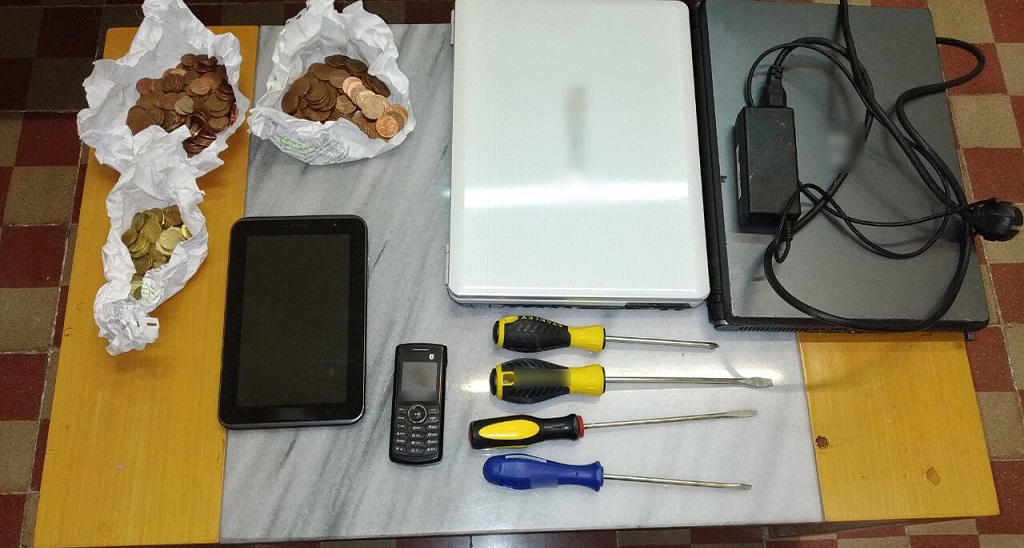 Ο δράστης προσήχθη χθες 8 Ιανουαρίου 2019 στην Υποδιεύθυνση Ασφαλείας Ρόδου και εξεταζόμενος υπέδειξε στους αστυνομικούς τον χώρο αποθήκευσης των κλοπιμαίων και απόκρυψης των διαρρηκτικών εργαλείων που χρησιμοποιούσε, όπου βρέθηκε μέρος των αφαιρεθέντων χρημάτων-αντικειμένων.