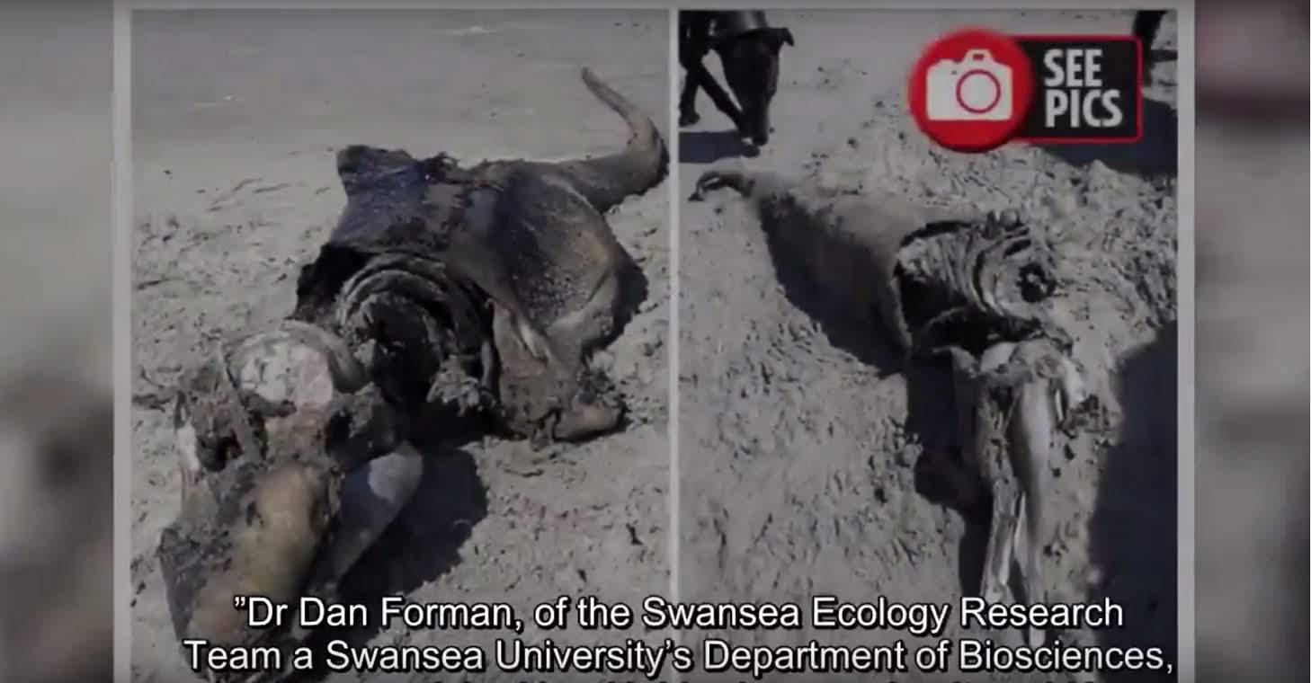 Δεκάδες κάτοικοι πήγαν να το δουν από κοντά στην παραλία Ρόσιλι της περιοχής Γκόβερ και αρκετοί τουρίστες το φωτογράφισαν και το ανέβασαν στα μέσα κοινωνικής δικτύωσης. Επιστήμονες είπαν ότι ίσως είναι ένα άγνωστο είδος δελφινιού που έχει μείνει στην ακτή πεθαμένο πάνω από ένα χρόνο.
