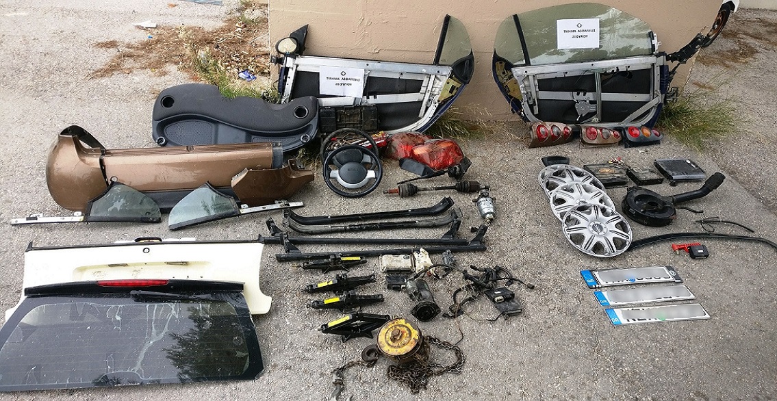 Στο εσωτερικό των συνεργείων, έπειτα από την έρευνα βρέθηκαν και κατασχέθηκαν τρία κλεμμένα αυτοκίνητα καθώς και πλήθος ανταλλακτικών και εξαρτημάτων οχημάτων.